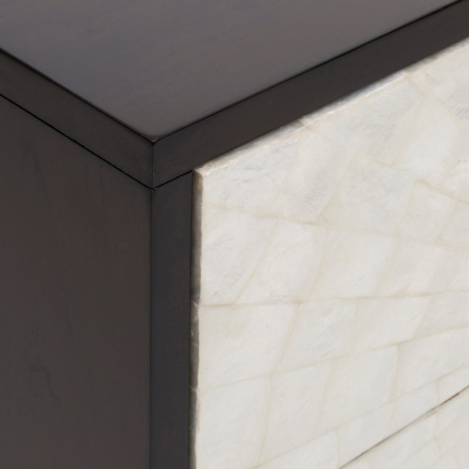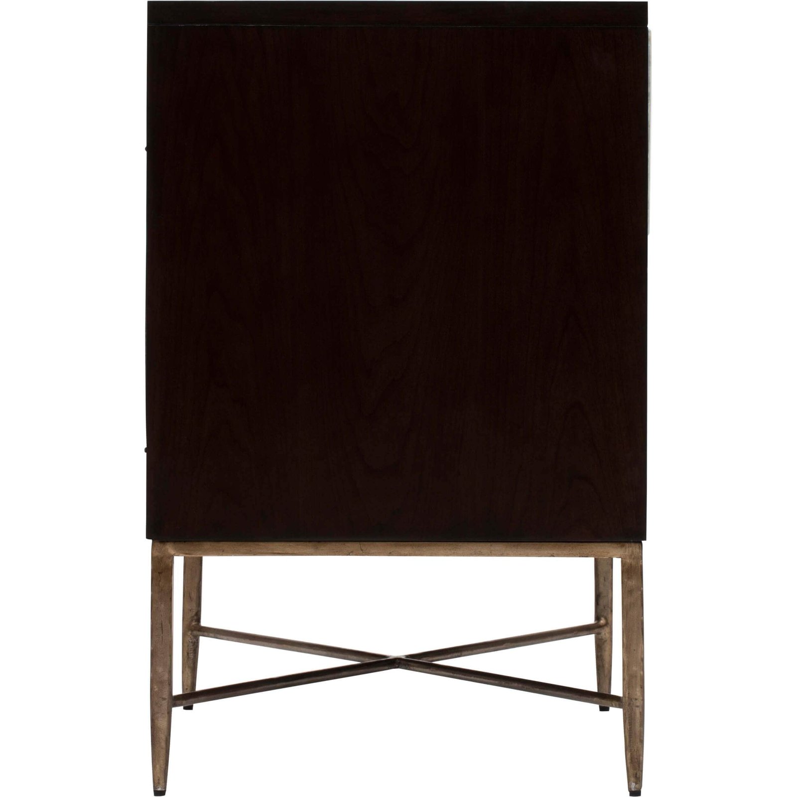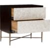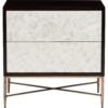 Made from hearty Gmelina solids with flat-cut cherry veneers in an espresso finish, the Adagio Nightstand features Capiz shell drawer fronts that are touch-to-open! The hand-hammered steel base comes in a bronze finish, bridging elegance and beauty.