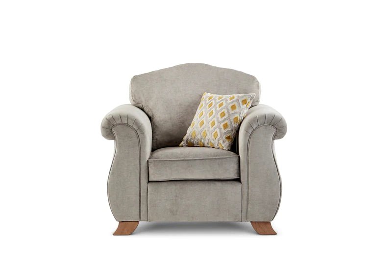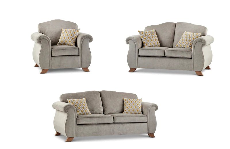 Modern sofa with a traditional look . High-quality materials. Built on solid wood frame in. Chenille upholstery. Filled with foam fibre seats and cushions that offer exceptional comfort. Rolled arm design and curved feet. |
