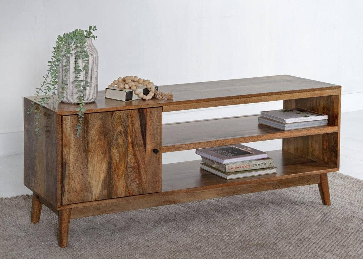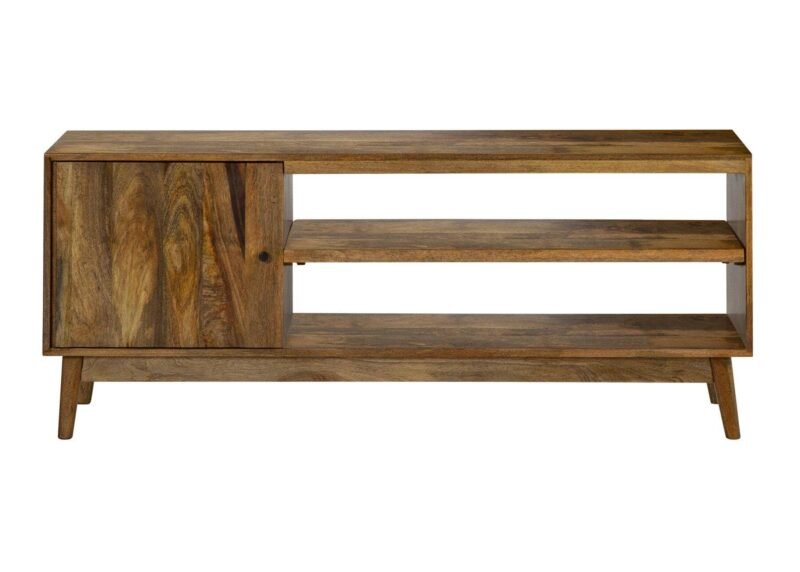 Scandinavian inspired, our Jarda TV Unit’s minimalist design incorporates splayed tapered solid timber legs and a sleek solid timber top.