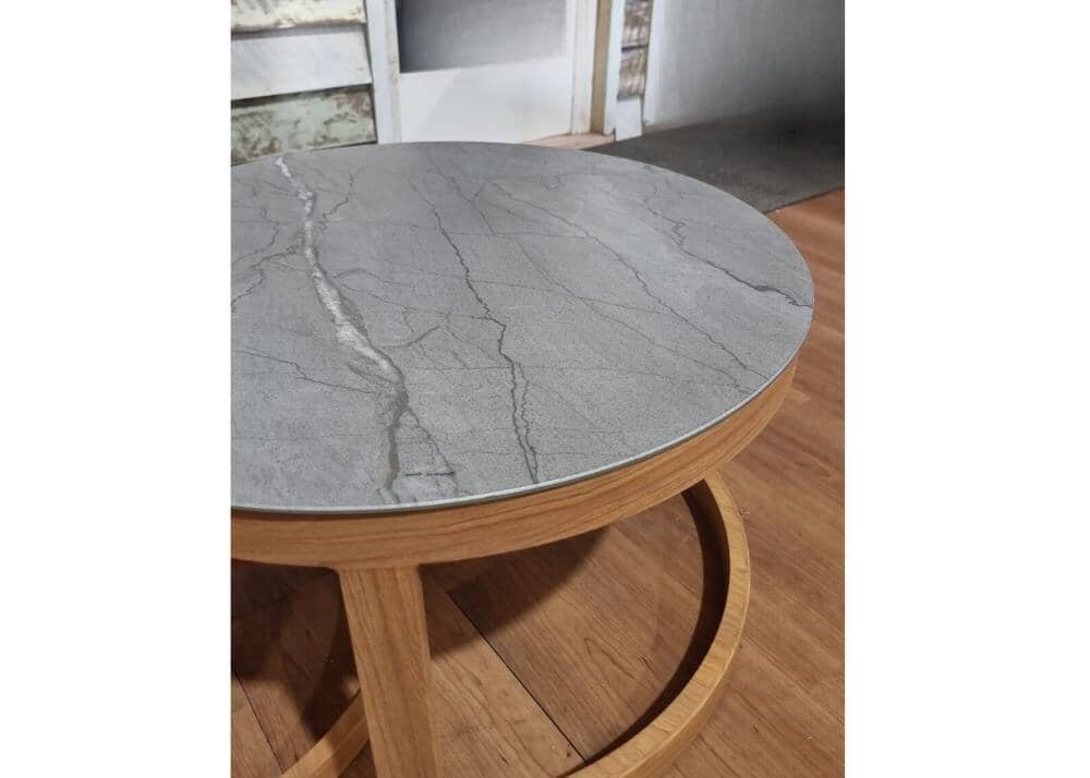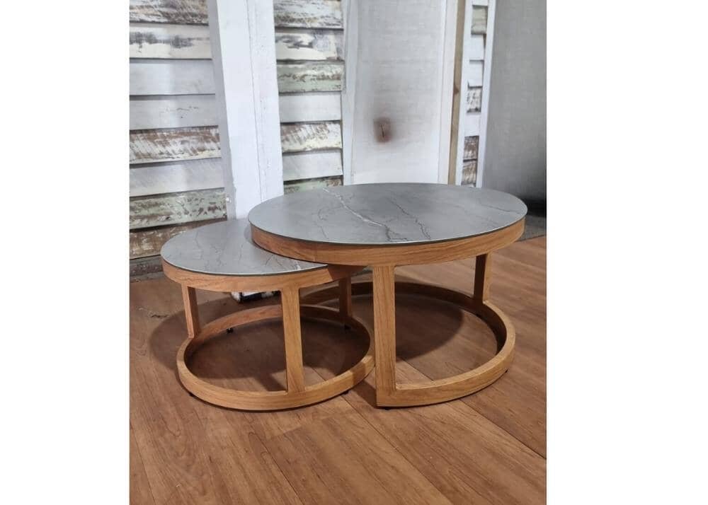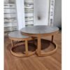 Measurements         Table 150 diameter  x 73cm    Chairs 62 x 62 x 95