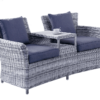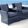 Get cozy with your favourite person on the Miami Jack and Jill Chair! With room for 2 and an inbuilt table and handy shelf, it’s perfect for sharing drinks and snacks. The synthetic natural look wicker is durable and long-lasting, while the outdoor olefin fabric cushions add extra comfort. Available in 2 trendy colour finishes.